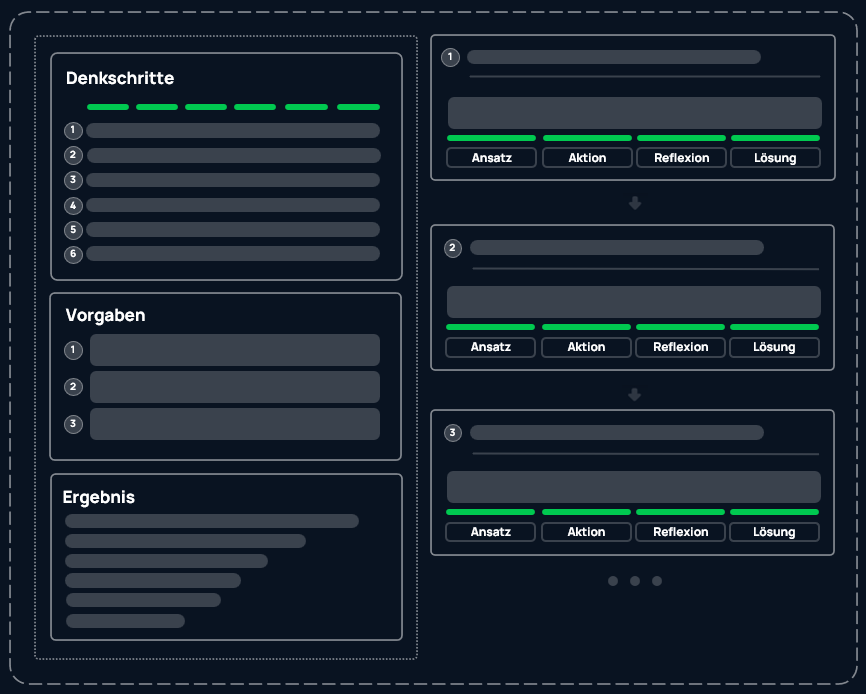 Die Lösung entsteht nicht in einer “Black Box”. Das CCM zerlegt das komplexe Problem in atomare, logische Einheiten. Jeder Schritt baut auf dem vorherigen auf: